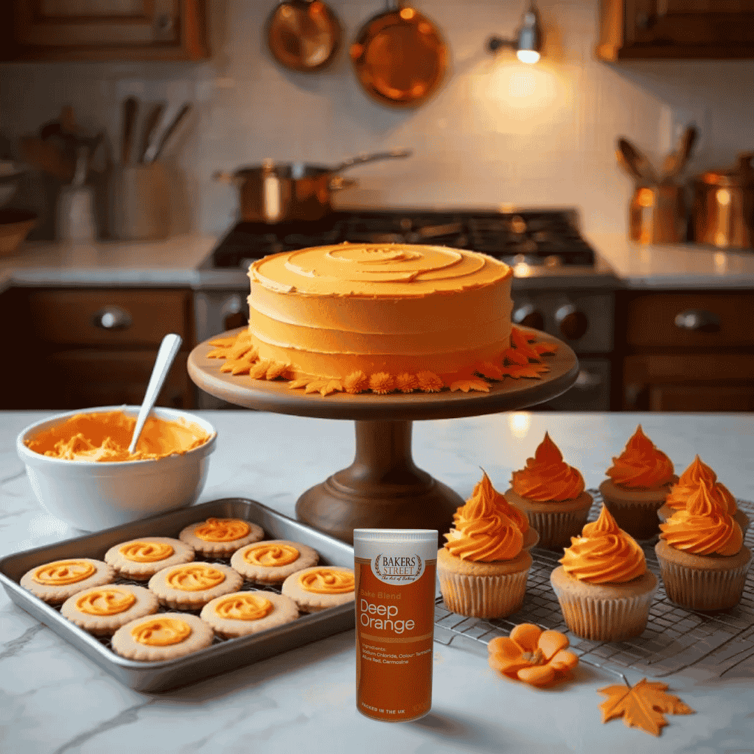 This deep orange colouring is outstanding. The shade is rich and vibrant, and it blends effortlessly into buttercream and fondant. A little goes a long way!