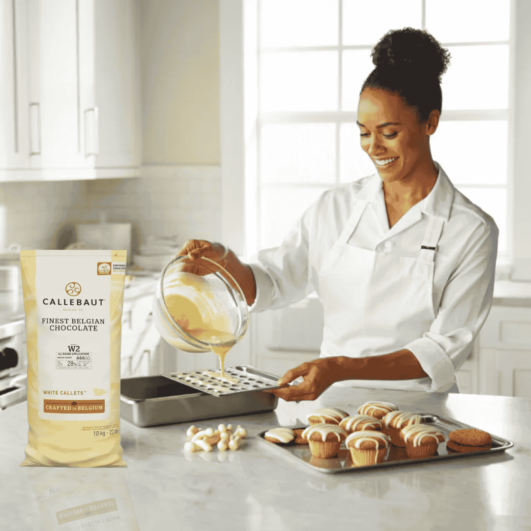 Simply measure the desired amount of Callebaut White Chocolate Callets and melt using a microwave, double boiler, or directly into recipes. These callets ensure smooth, lump-free chocolate every time.