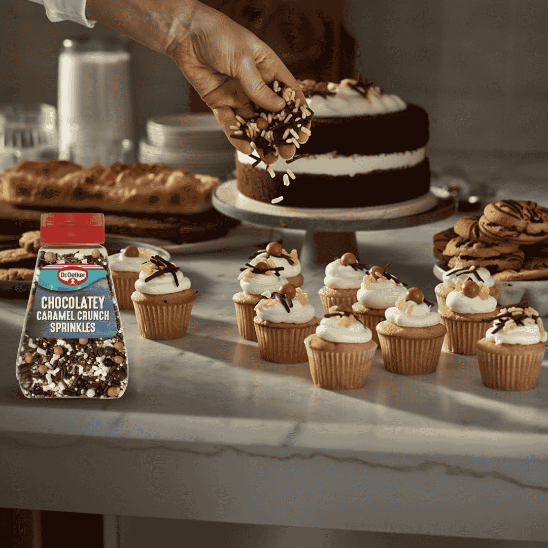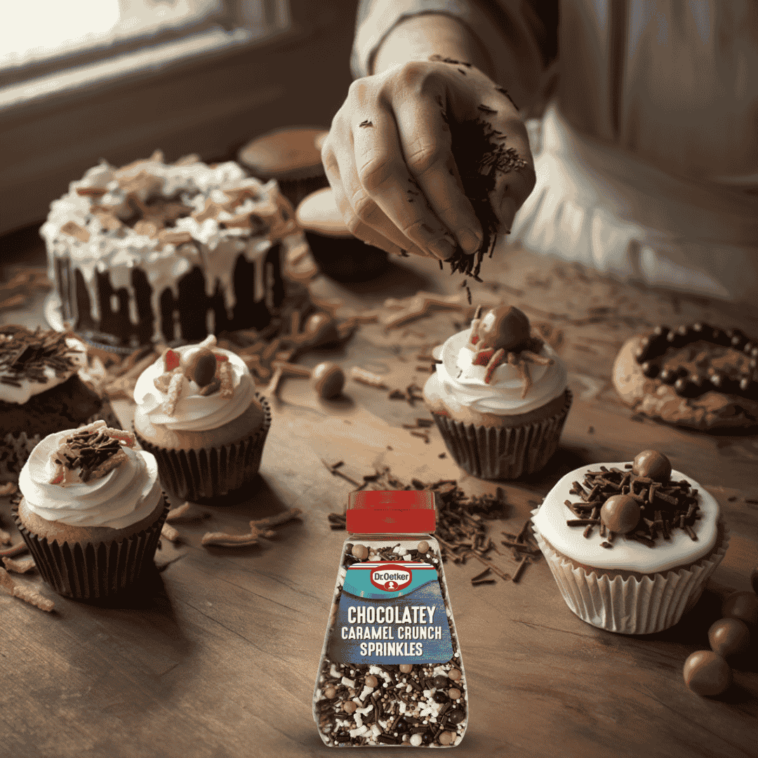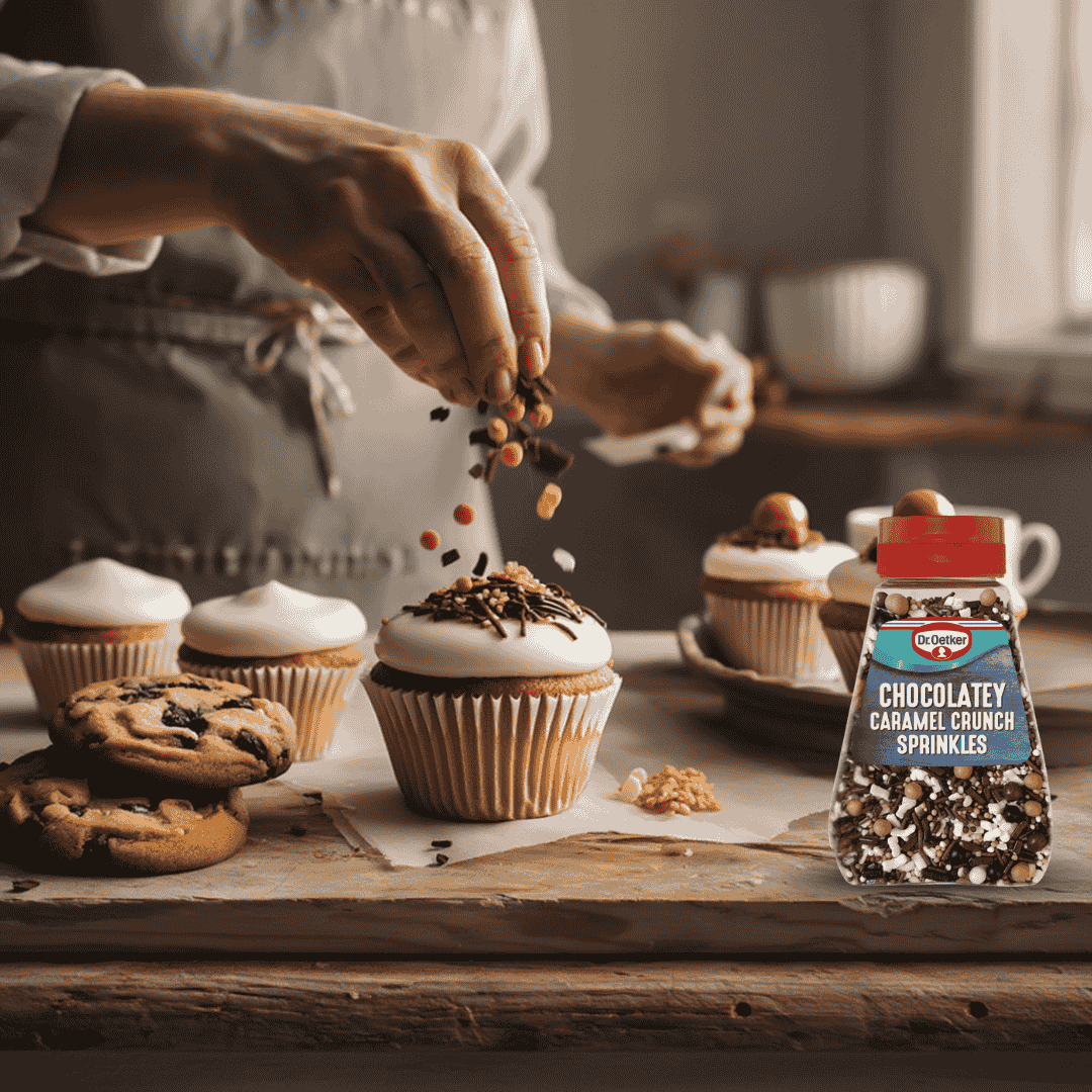 Sprinkle Dr. Oetker Chocolatey Caramel Crunch over your freshly iced cupcakes for a finishing touch, or mix it into brownie batter for a surprise crunch. You can also use it as a topping for sundaes, milkshakes, and even specialty coffees to delight your customers or loved ones.