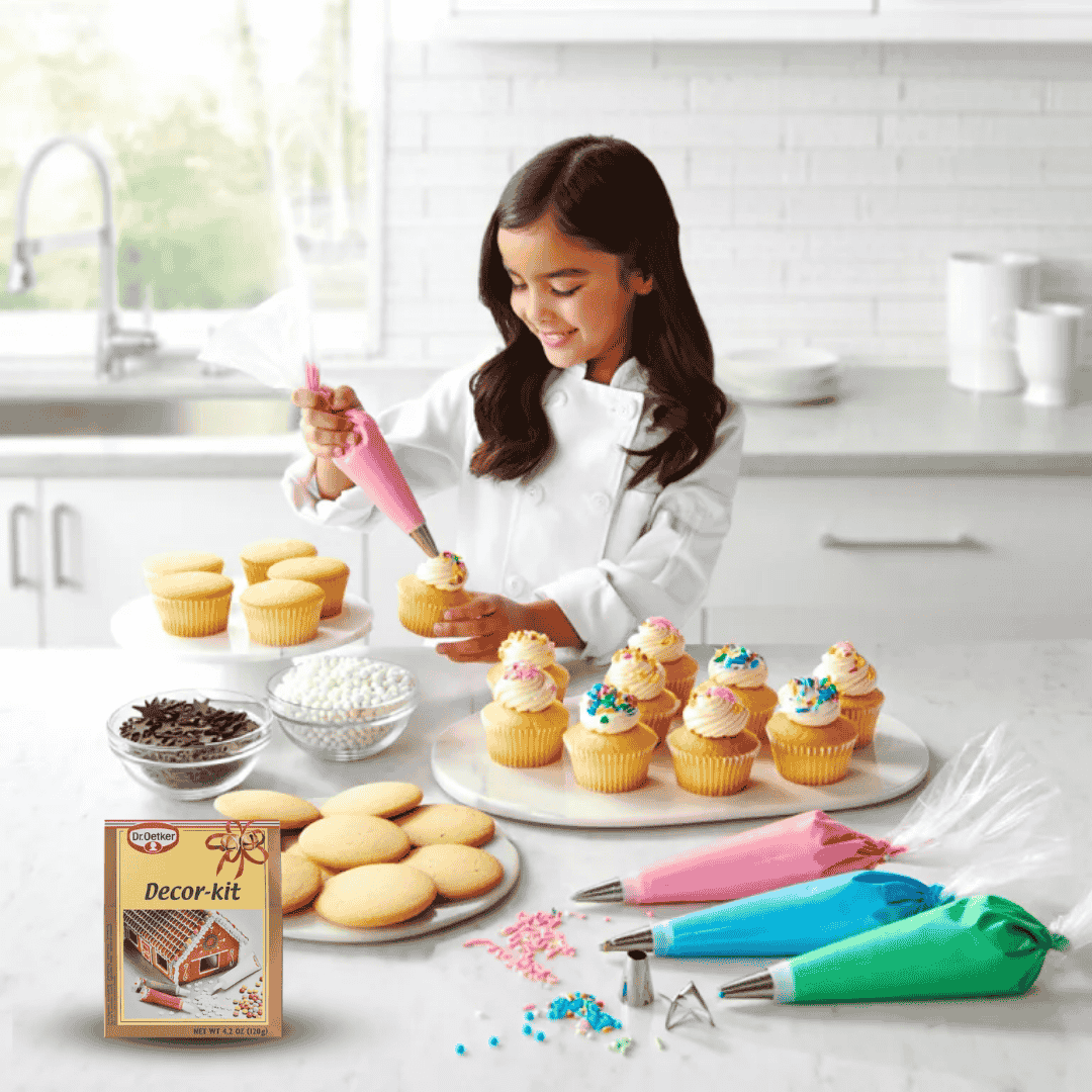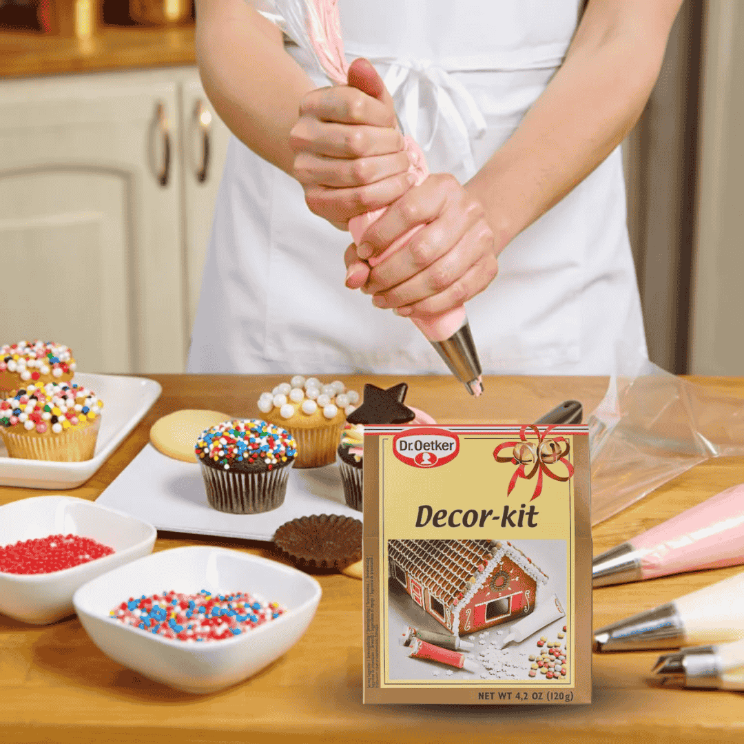 - Use the Dr. Oetker Decor Kit 108g for birthdays, parties, family treats, school events, or weekend baking fun. Every celebration deserves a beautiful dessert. With this kit, you can transform simple baked goods into eye-catching delights in minutes.