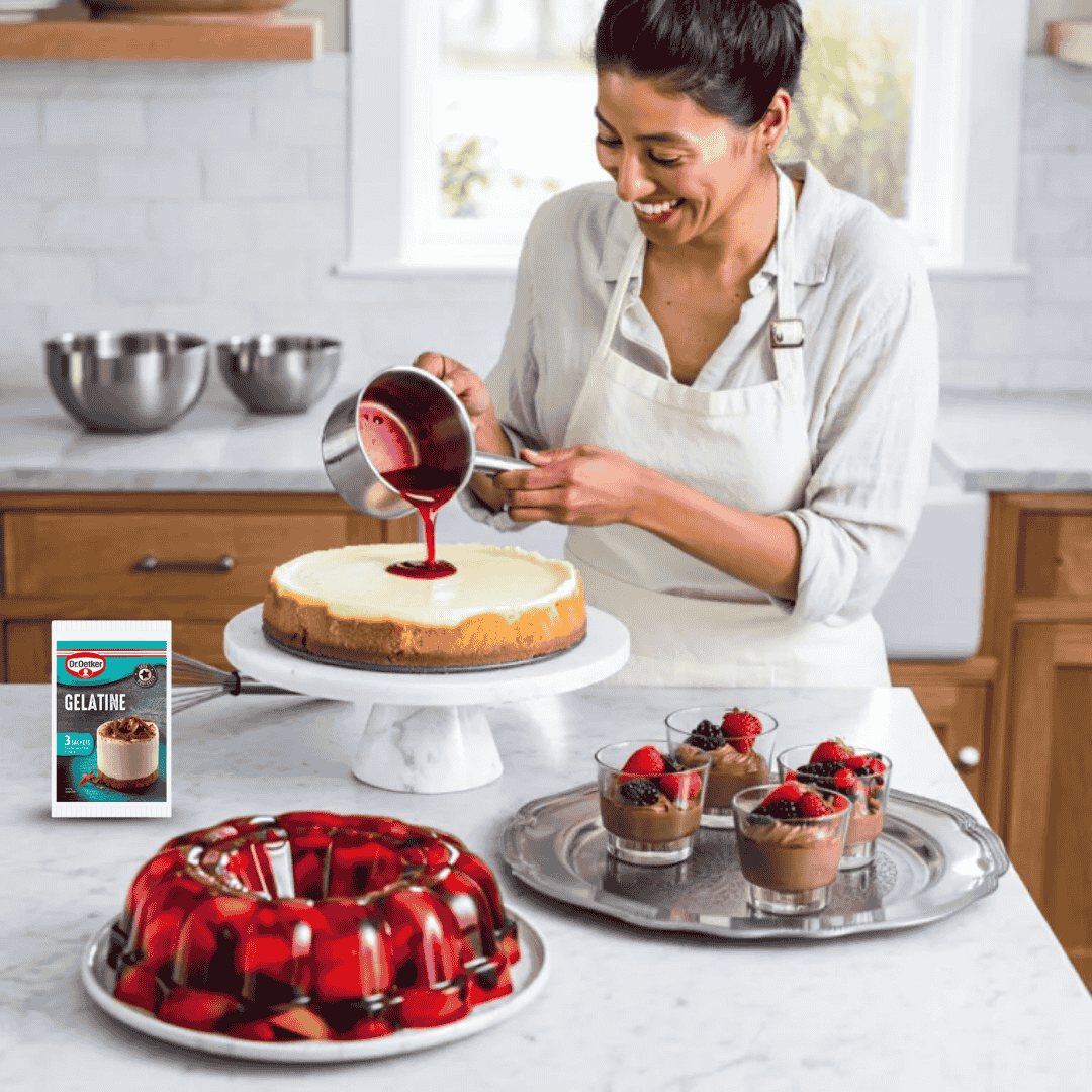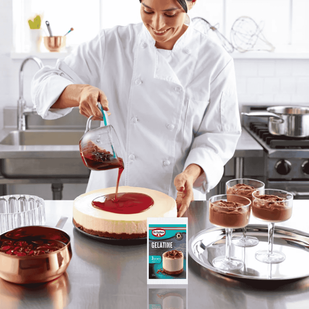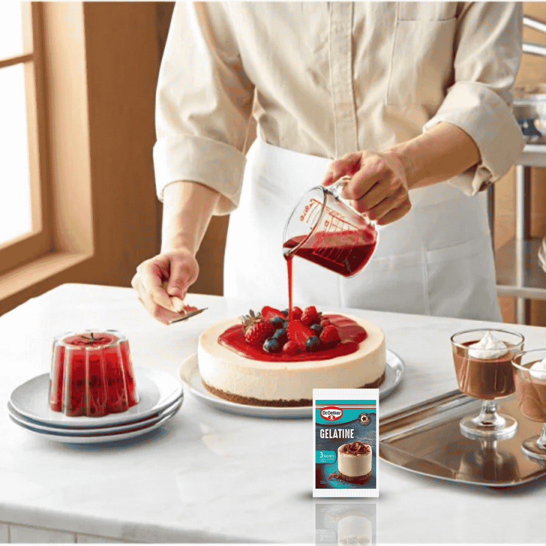Upgrade your dessert creations with Dr. Oetker Gelatine Sachets – available now from Bakers Street, your reliable partner in baking.