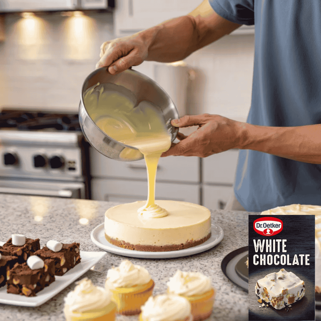 Both home bakers and professional pastry chefs love Dr. Oetker White Chocolate for its ease of use. It melts effortlessly, allowing for smooth mixing and precise tempering in every recipe.
