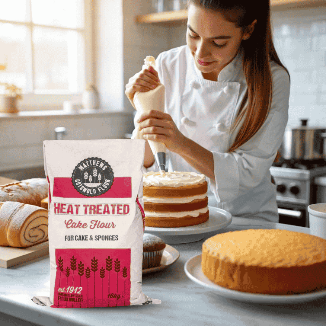 I use Matthews Heat Treated Cake Flour for my small bakery. It performs perfectly in high-volume production and helps achieve a fine, uniform crumb every time.