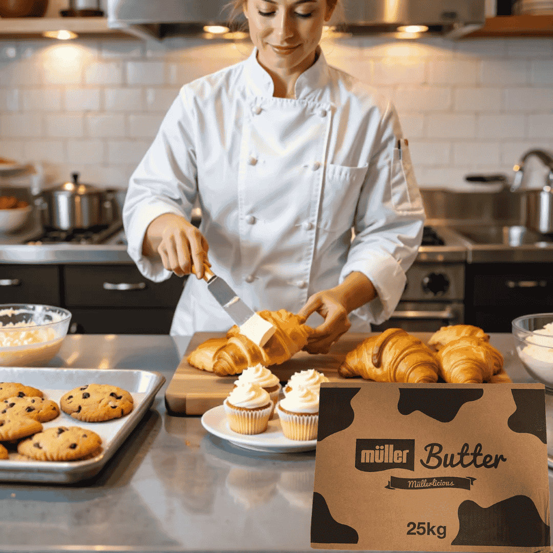 At Bakers Street, we understand the needs of professionals in the baking industry. That’s why we only supply high-performance ingredients that deliver consistent results every time. Muller Unsalted Butter is a staple in our range, offering excellent performance, flavour, and reliability.