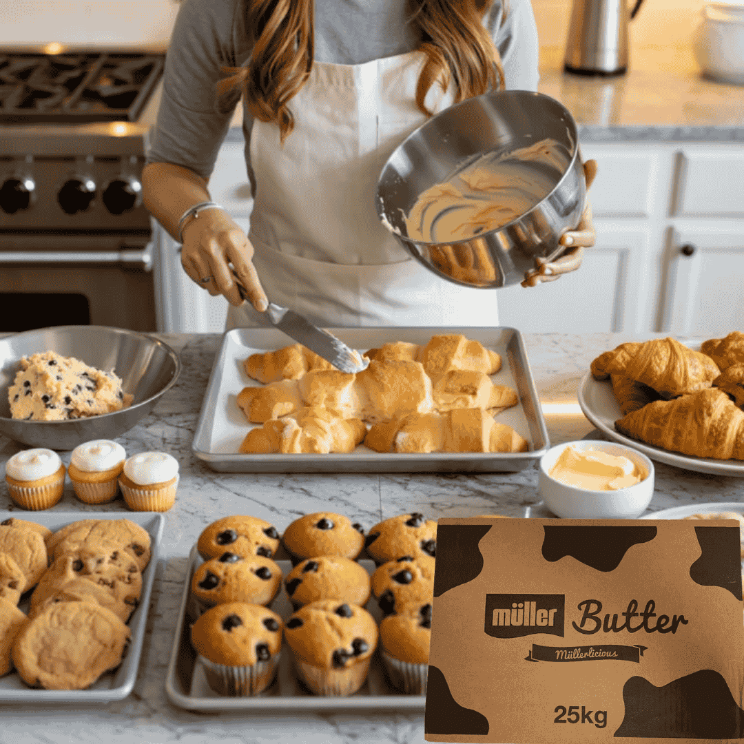 Looking for high-quality butter for your bakery or catering business? Muller Unsalted Butter 25kg is the ideal choice for professional bakers who demand consistency, purity, and exceptional taste. At Bakers Street, your trusted bakery ingredient supplier, we proudly stock Muller’s premium unsalted butter to help you achieve the finest results in every recipe.