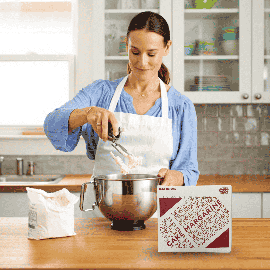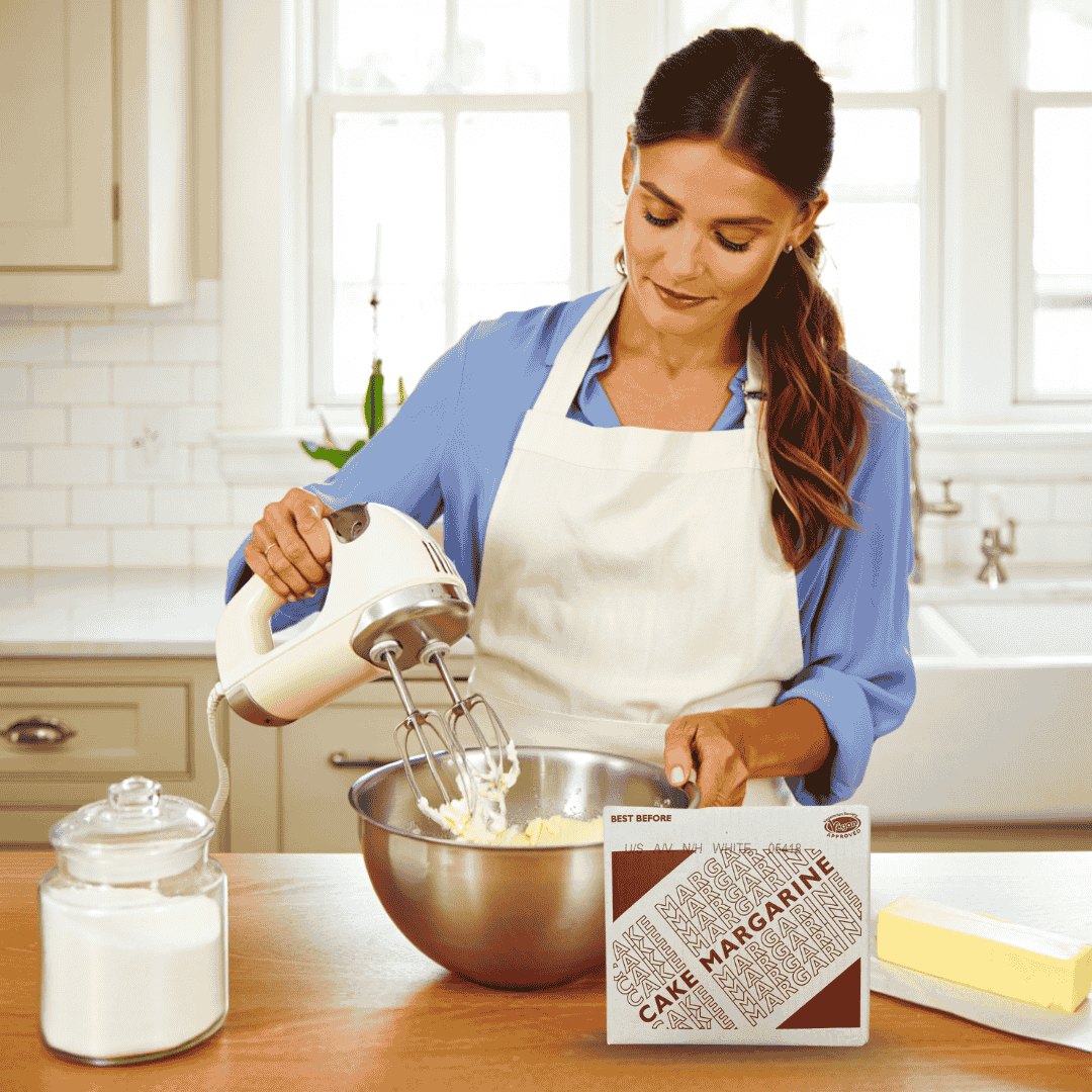 This margarine works beautifully for all my cake recipes. Great structure, even bake, and excellent value for the size.