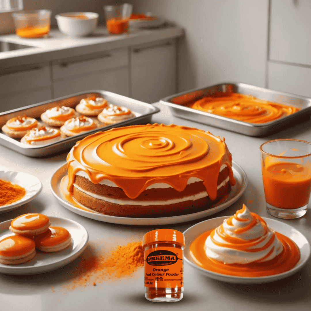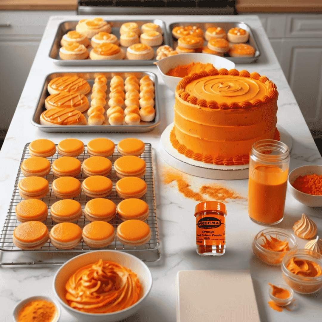 Simply add a small amount of Preema Bright Orange Food Colour Powder to your mix and adjust the intensity as needed. Due to its concentrated formula, start with a tiny pinch and increase gradually to achieve the desired shade.
