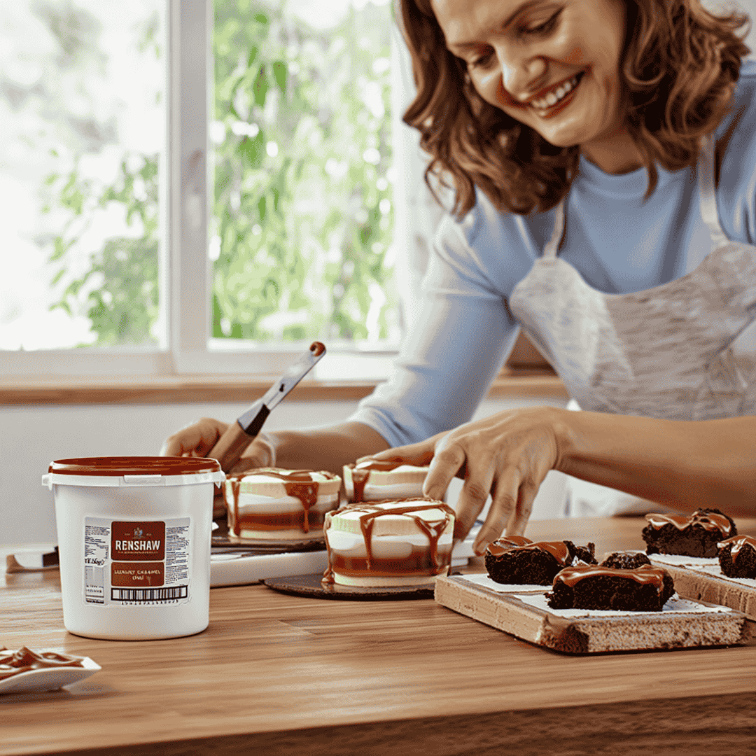 Renshaw Luxury Caramel is ready to use straight from the tub. It saves you preparation time and ensures a consistent result every time. This caramel resists crystallization and stays stable under different temperatures. You can use it for baking, cooking, or even in cold desserts. Create caramel-filled chocolates, banoffee pies, or layered sponge cakes with ease. Each product is enhanced by its rich flavour and silky texture.